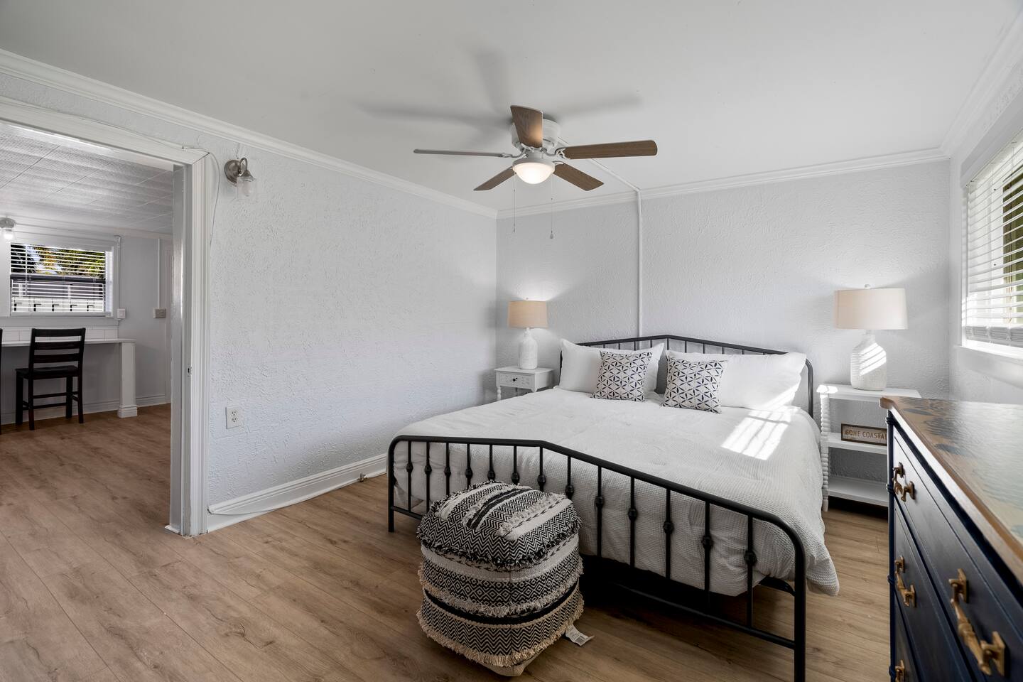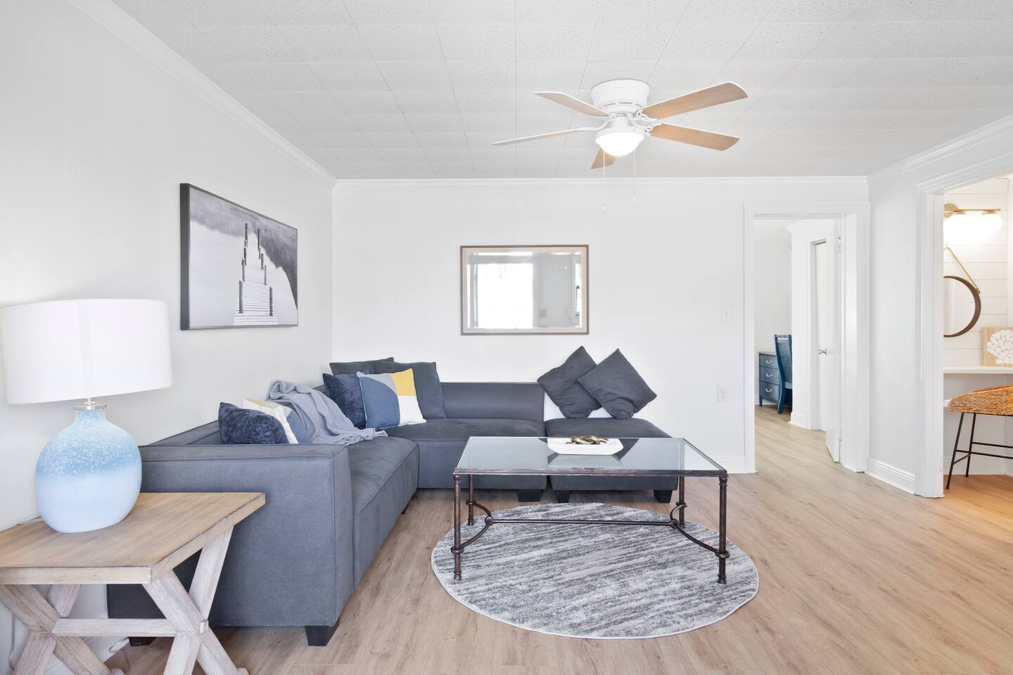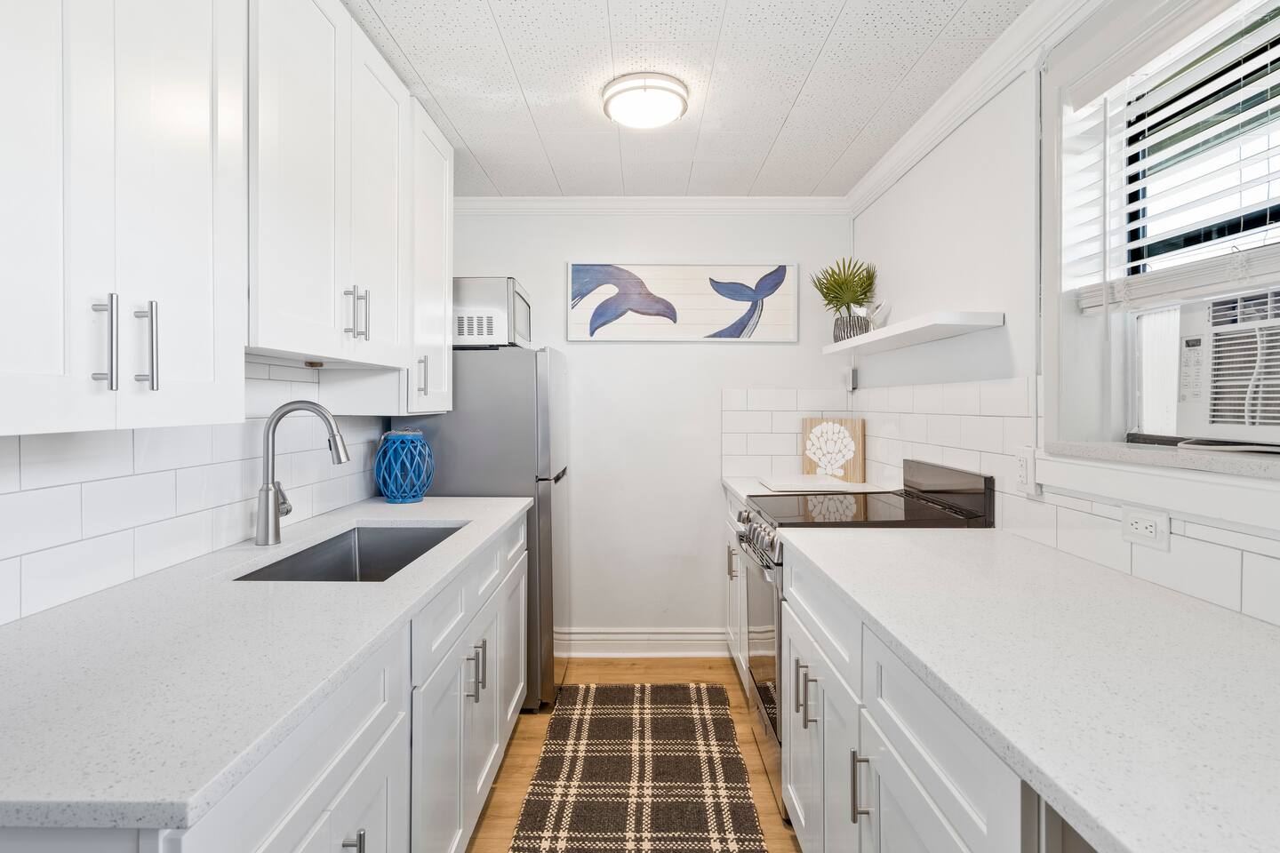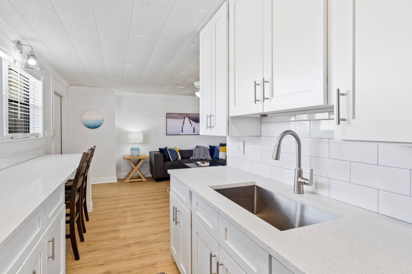 Enjoy a stylish experience at this centrally-located well appointed space in Jensen Beach. Explore the best of the Treasure Coast in our newly renovated apartment. Sunny living room / kitchen, quartz counters with stainless steal appliances. king size bed, large walk in shower, dedicated working space.