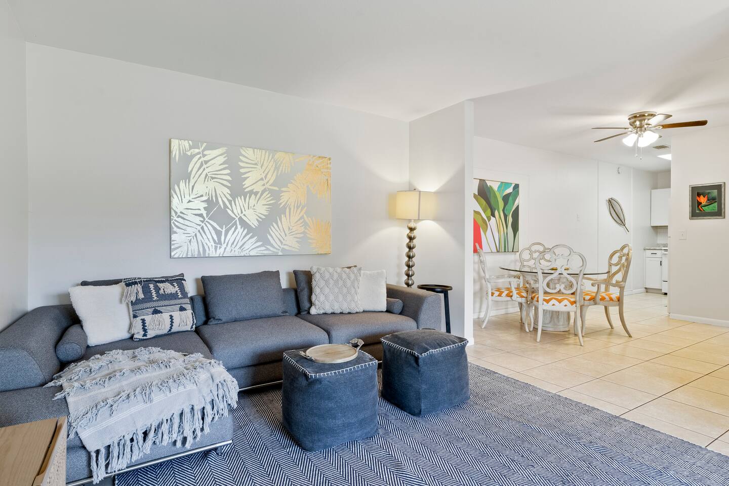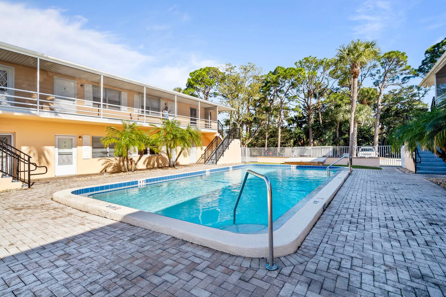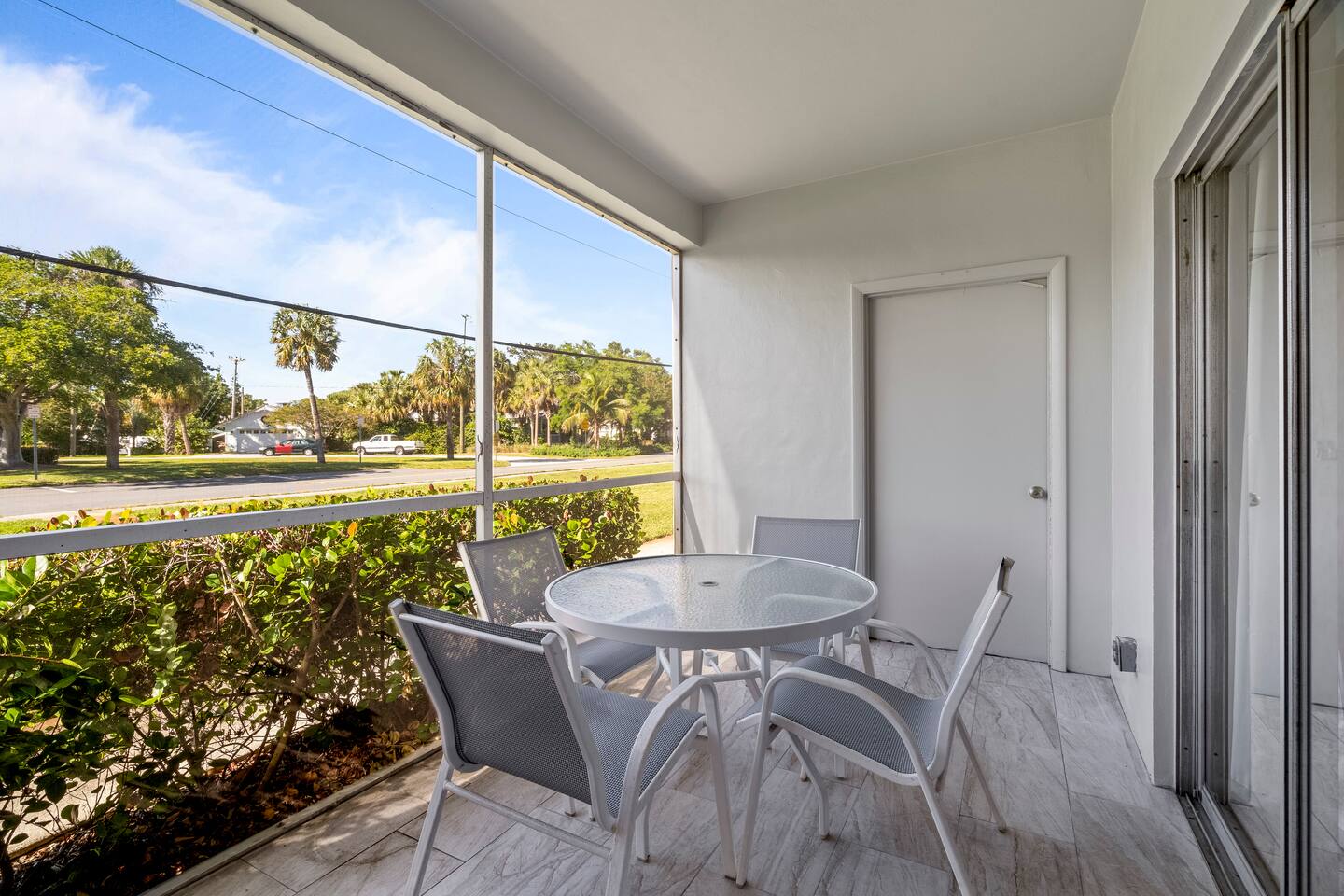 First floor apartment with community pool! Enjoy a stylish experience at this centrally-located condo in the heart of Stuart. If you are a foodie you will have many dinning choices, some you can even walk to! 2 miles outside of downtown, 10 minutes to Stuart Beach. Screened patio with table and chairs for dinning or just enjoying the outdoor space.