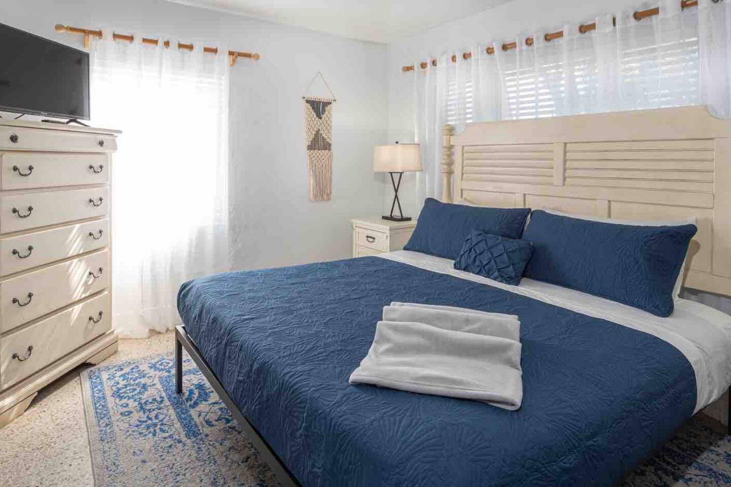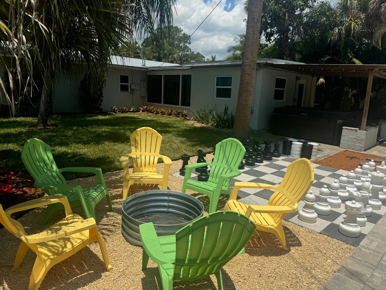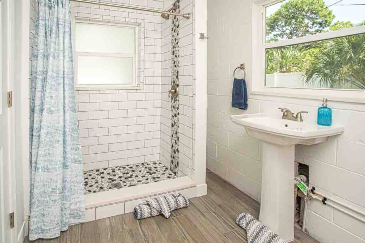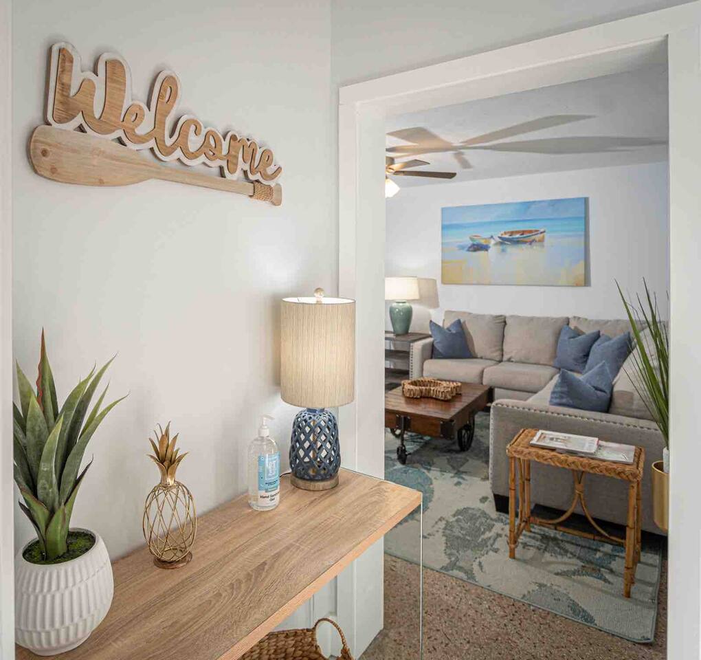 Welcome to Leisure at Laguna, a beautifully remodeled home designed for relaxation, entertainment, and comfort. This three-bedroom, two-bathroom retreat features a spacious layout, private outdoor areas, and modern amenitiesβperfect for families, groups, and pet owners. Key Features: Private Hot Tub β Unwind in the 6-person spa after a day of exploring. Game Room β Includes foosball, classic arcade games. Fully Fenced Backyard β Safe and spacious, great for pets and outdoor games. Screened Porch & Two Patios β Relax with outdoor seating, BBQ grill, and lush landscaping. Main House: Bedroom 1 (Master Suite): King-size bed with premium linens & stylish decor Built-in closet system & Smart TV Cool navy & white calming color palette Bedroom 2: Queen-size bed with spa-like ambiance Large windows for natural light & relaxing vibes ample closet space Bedroom 3: Desk, with a queen bed, Smart TV. Bathrooms: Bathroom 1 (Main House): Modern walk-in shower with spa-inspired design Fresh towels, toiletries & hairdryer provided Bathroom 2 (off screened patio) Fully remodeled with a walk-in shower & stylish vanity Steps from the guest suite for convenience & privacy Fully Equipped Kitchen: Stainless steel appliances & ample counter space Stocked with pots, pans, utensils, blender, toaster & more Coffee maker Dining table for six guests Outdoor Spaces: Screened Patio β Comfortable seating area, perfect for morning coffee or evening drinks Backyard with Two Patios β Outdoor dining table, lounge chairs & BBQ grill Hot Tub & Fire Pit Area β The ultimate relaxation spot! Yard Games β Chess, checkers & more for fun outdoor entertainment Modern Comforts: High-speed WiFi (Comcast Blast!) β work space Ideal for remote work & streaming Washer & dryer in a separate laundry area