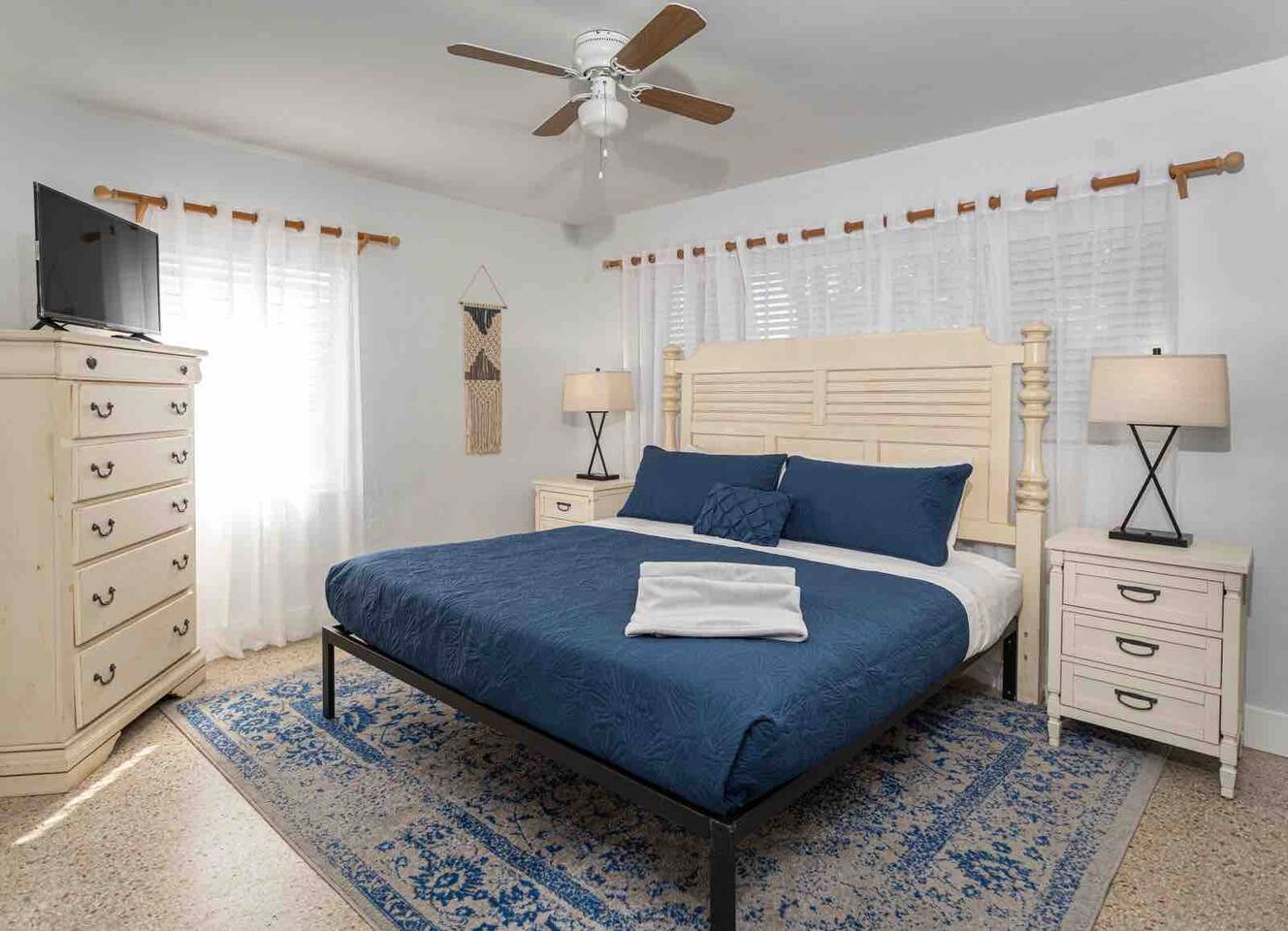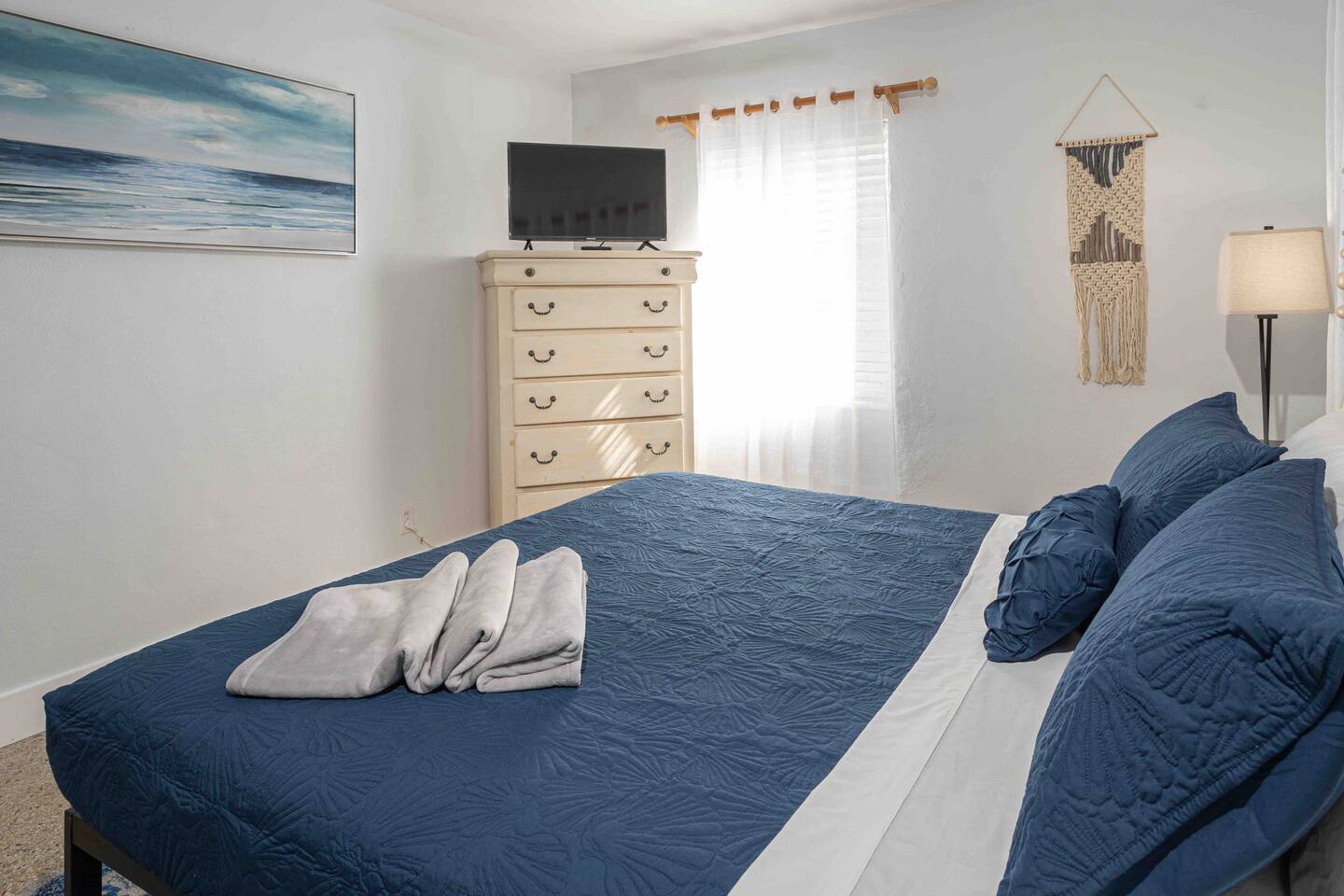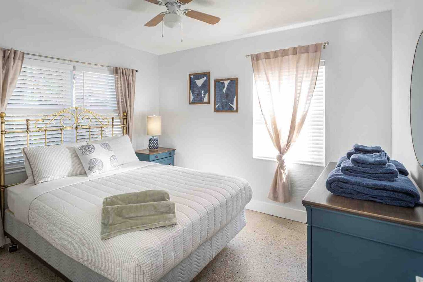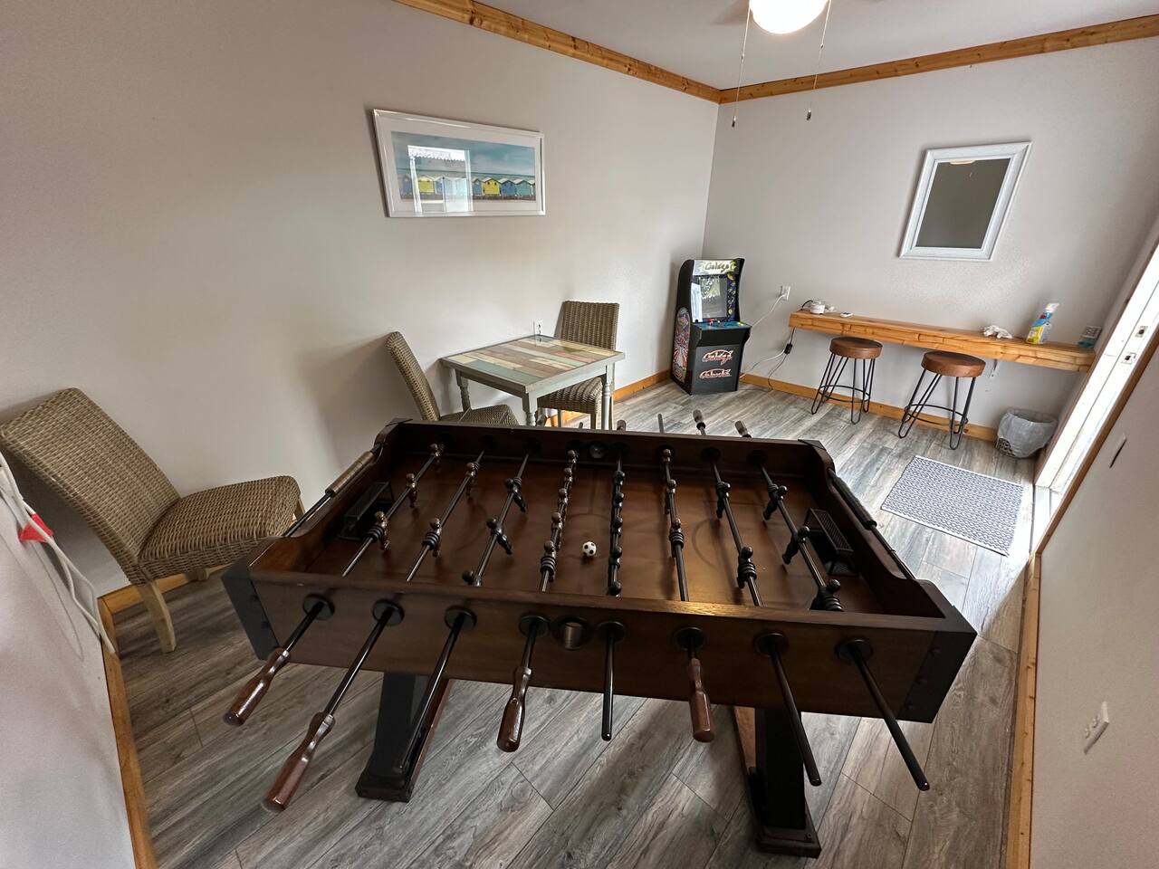 Welcome to Leisure at Laguna, a beautifully remodeled home designed for relaxation, entertainment, and comfort. This three-bedroom, two-bathroom retreat features a spacious layout, private outdoor areas, and modern amenitiesβperfect for families, groups, and pet owners. Key Features: Private Hot Tub β Unwind in the 6-person spa after a day of exploring. Game Room β Includes foosball, classic arcade games. Fully Fenced Backyard β Safe and spacious, great for pets and outdoor games. Screened Porch & Two Patios β Relax with outdoor seating, BBQ grill, and lush landscaping. Main House: Bedroom 1 (Master Suite): King-size bed with premium linens & stylish decor Built-in closet system & Smart TV Cool navy & white calming color palette Bedroom 2: Queen-size bed with spa-like ambiance Large windows for natural light & relaxing vibes ample closet space Bedroom 3: Desk, with a queen bed, Smart TV. Bathrooms: Bathroom 1 (Main House): Modern walk-in shower with spa-inspired design Fresh towels, toiletries & hairdryer provided Bathroom 2 (off screened patio) Fully remodeled with a walk-in shower & stylish vanity Steps from the guest suite for convenience & privacy Fully Equipped Kitchen: Stainless steel appliances & ample counter space Stocked with pots, pans, utensils, blender, toaster & more Coffee maker Dining table for six guests Outdoor Spaces: Screened Patio β Comfortable seating area, perfect for morning coffee or evening drinks Backyard with Two Patios β Outdoor dining table, lounge chairs & BBQ grill Hot Tub & Fire Pit Area β The ultimate relaxation spot! Yard Games β Chess, checkers & more for fun outdoor entertainment Modern Comforts: High-speed WiFi (Comcast Blast!) β work space Ideal for remote work & streaming Washer & dryer in a separate laundry area
