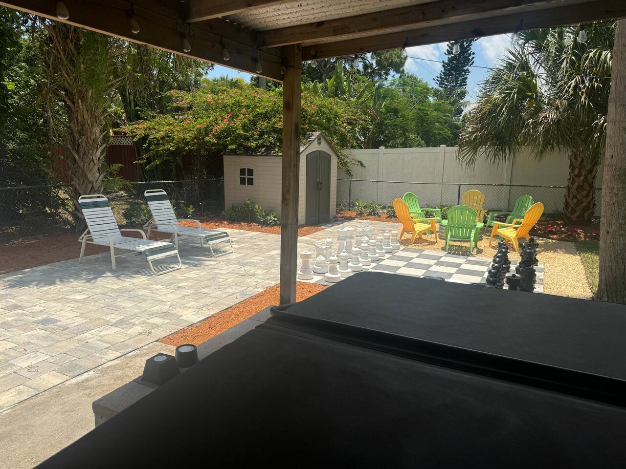 Guests have exclusive access to the entire property, including: Main House (2 bedrooms, one bath, living room, dining area, kitchen) Private Guest Suite (Detached, steps from 2nd bathroom) Game Room Fully Fenced Backyard & Patios Screened-In Porch with Lounge Seating Hot Tub & Outdoor Games Area Laundry Room (separate structure with washer, dryer & 2nd bathroom) Parking: Free private parking in the driveway for 2