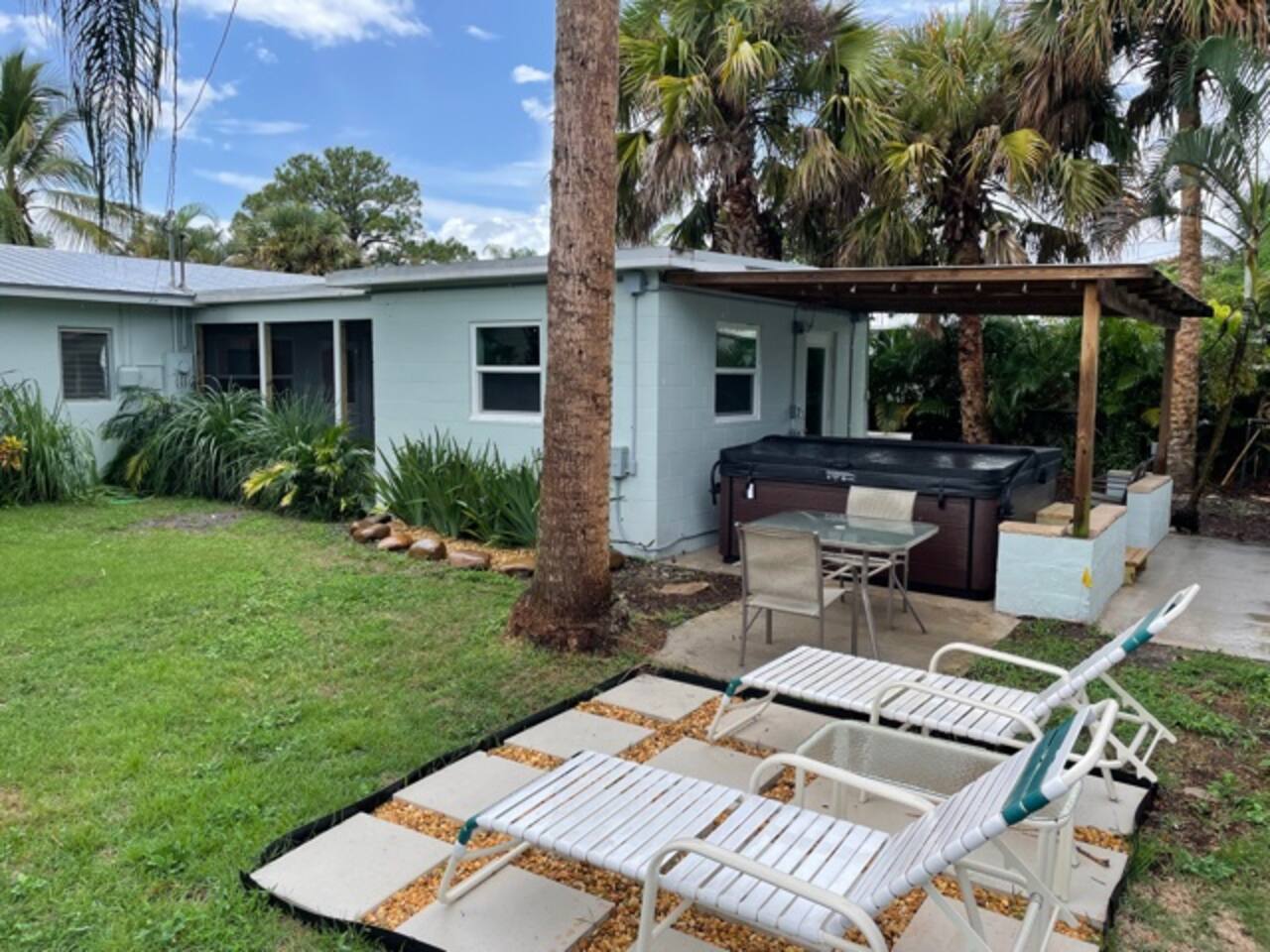 Discover Leisure at Laguna, a beautifully remodeled home featuring a hot tub, game room, and back yard games! Perfect for families, this spacious retreat offers a screened porch, BBQ grill, and a fully stocked kitchen. Just minutes from Stuart and Hobe Sound beaches, parks, and top dining spots. After a day of adventure, unwind in the spa or challenge friends to a game night. Pet-friendly with a fenced yard!